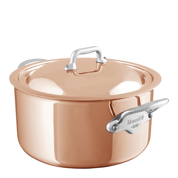 M'6s gryta med lock på 3,4 L i koppar/stål från Mauviel är en mästerlig kombination av tradition och modern teknik. Med sex lager av noggrant utvalda material erbjuder denna gryta enastående värmefördelning och prestanda för överlägsen matlagning.