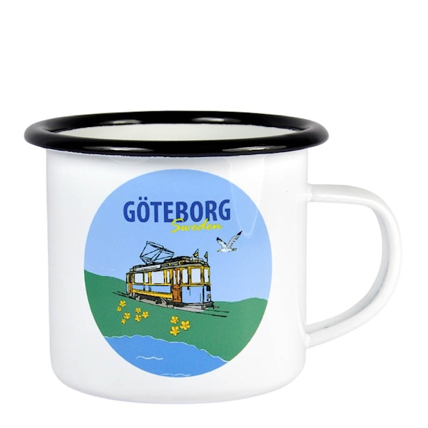 Mellow Design Emaljmugg Trikk 35 cl vit kombinerar robust material med ett nostalgiskt motiv. Den klassiska spårvagnen tryckt i färg ger muggen ett tydligt uttryck, och det slitstarka emaljmaterialet gör den perfekt till vardag och fritid.