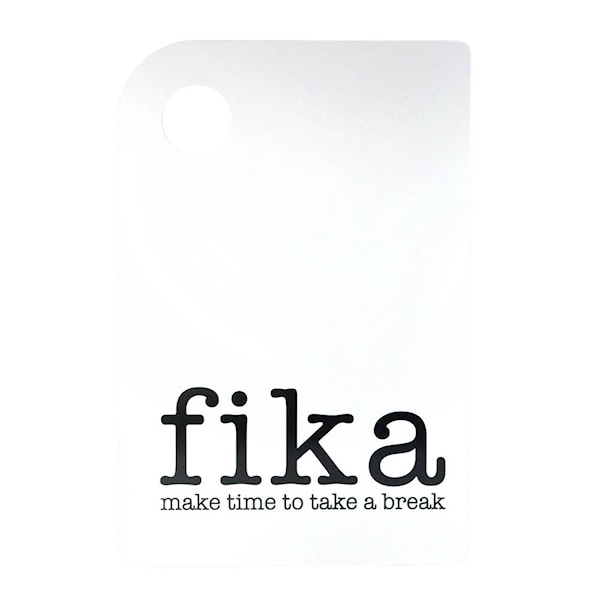 Mellow Design Skärbräda Make Time Fika 30x20 cm vit/svart är en praktisk köksdetalj med ett budskap som passar alla: ta dig tid för fika. Den stilrena designen med svart text på vit botten gör den lätt att matcha med olika inredningsstilar.