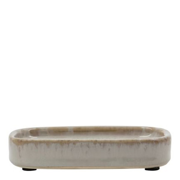 Tvålkoppen är gjord av lergods med en gråaktig glasyr och bidrar till en lugn och naturlig känsla i ditt hem. En liten detalj som gör stor skillnad.