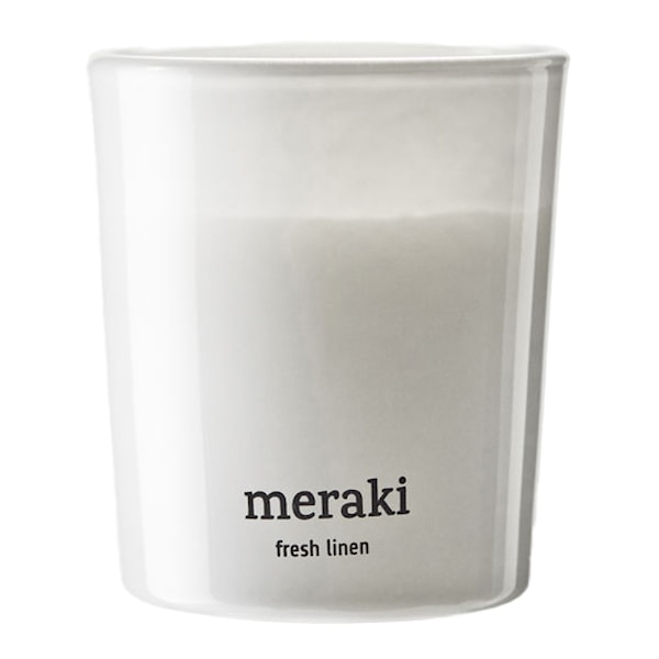 Förvandla ditt hem till en oas av lugn med doftljuset Fresh Linen 7x6 cm från Meraki. Detta doftljus sprider en mjuk och ren doft av nytvättat linne som skapar en fridfull och uppfriskande atmosfär. De uppfriskande toppnoterna av citron och apelsin ger en härlig friskhet, medan hjärtat av jasmin och ros tillför en blommig och sofistikerad nyans. Basen av mysk och vetiver kompletterar doften med en jordnära och varm ton, vilket ger en känsla av ro och harmoni.