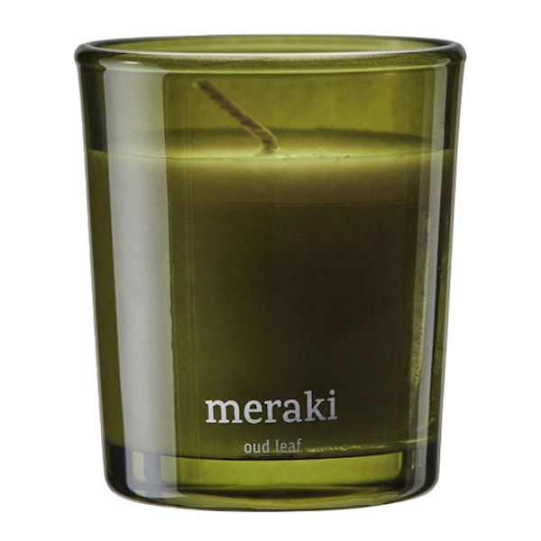 Den eleganta gröna glasbehållaren tillför en touch av sofistikation till ditt hem och passar perfekt in i vilken inredning som helst. Doftljuset är utrustat med en bomullsveke utan tungmetaller, vilket säkerställer en ren och säker bränning. Med en brinntid på hela 35 timmar kan du njuta av denna förtrollande doft under lång tid. Tillverkat i EU, uppfyller detta doftljus de högsta kvalitetsstandarderna. Låt Oud Leaf doftljuset från Meraki skapa en lugn och harmonisk atmosfär i ditt hem och ge dig själv en stund av avkoppling och välbefinnande.