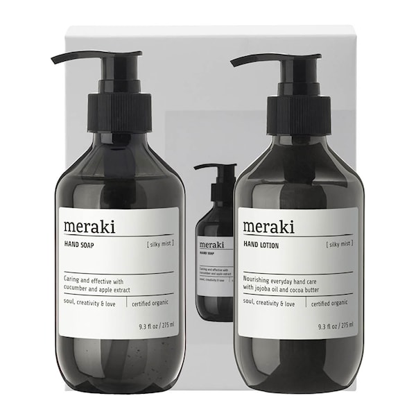Ge sinnet en paus med Meraki Silky Mist gåvoset handvård, 275 ml. Setet innehåller en mild handtvål och en mjukgörande handkräm – perfekt för den dagliga rutinen. Doften är mild och harmonisk, en behaglig följeslagare i vardagen.