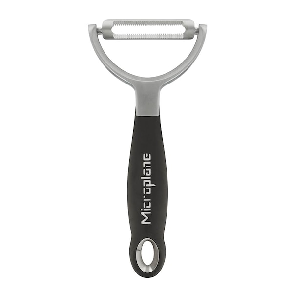 Microplane Professional Y-skalare med tandat blad i svart är en praktisk skalare för skonsam användning. Den Y-formade designen ger bra kontroll och jämnt resultat.