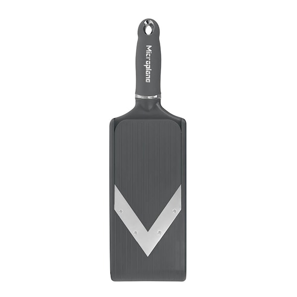Microplane V-blade Mandolin PureCut Justerbar är ett precist skärverktyg utvecklat för noggrann och effektiv skivning av frukt och grönsaker. Det ultraskarpa V-formade bladet i rostfritt stål ger rena snitt med minimalt motstånd och jämna resultat.