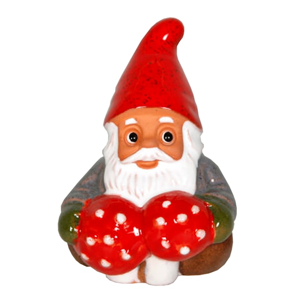 Den här fina tomten är handgjord i keramik och tillverkad av Rolf Berg. Med den här tomten sittandes på din hylla, fönsterbräda eller bord kommer julkänslan bli ett faktum. Med de detaljerade flugsvamparna i sin famn sprider han glädje och julkänsla i hemmet.