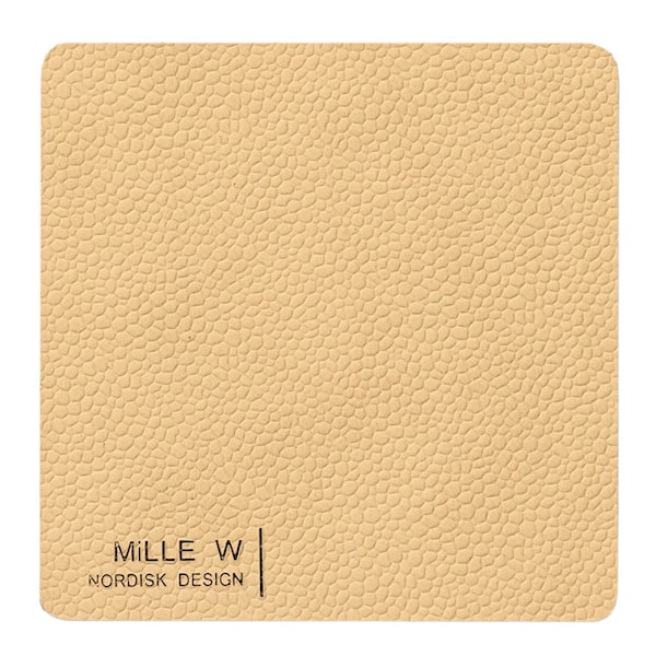 MiLLE W NORDISK DESIGN glasunderlägg 10x10 cm är framtaget för en funktionell och stilren dukning. Det är tillverkat av GRS®-certifierat återvunnet läder där materialets naturliga struktur och karakteristiska läderkänsla bevaras.