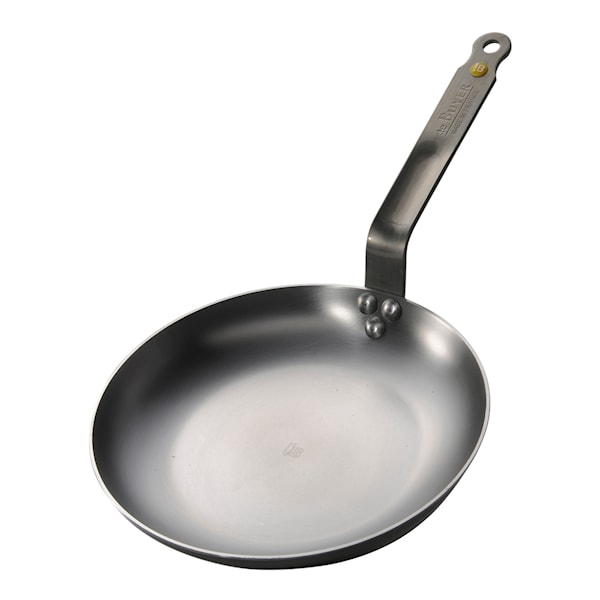 Omelettpanna ur serien Mineral B Elements från de Buyer. Räfflorna i botten ger ett fint stekmönster samt minskar risken för vidbränning av maten. Stekpannan är tillverkad av kolstål – ett material som gör stekpanna helt återvinningsbar! Kolstål blir efterhand som det används ”instekt” vilket resulterar i mörkare färg samt att kärlen får en naturlig ”non-stick-egenskap” som gör det enklare att steka i kärlen utan att maten fastnar. Stekkärlen är sprayade med bivax som skyddar mot rost samt förbättrar "släpp lätt effekten" under instekningsprocessen. Tål mycket hög värme men upphettning och avsvalning måste ske långsamt så att inte järnet slår sig. Fungerar på alla värmekällor och du kan använda alla typer av redskap, även metallredskap.