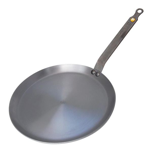 Pannkakspanna ur serien Mineral B Elements från de Buyer. Pannans låga kant gör det enklare att vända pannkakorna så du alltid får ett perfekt resultat. Pannkakspannan är tillverkad av kolstål – ett material som gör stekpannan helt återvinningsbar! Kolstål blir efterhand som det används ”instekt” vilket resulterar i mörkare färg samt att kärlen får en naturlig ”non-stick-egenskap” som gör det enklare att steka i kärlen utan att maten fastnar. Stekkärlen är sprayade med bivax som skyddar mot rost samt förbättrar "släpp lätt-effekten" under instekningsprocessen. Tål mycket hög värme men upphettning och avsvalning måste ske långsamt så att inte järnet slår sig.