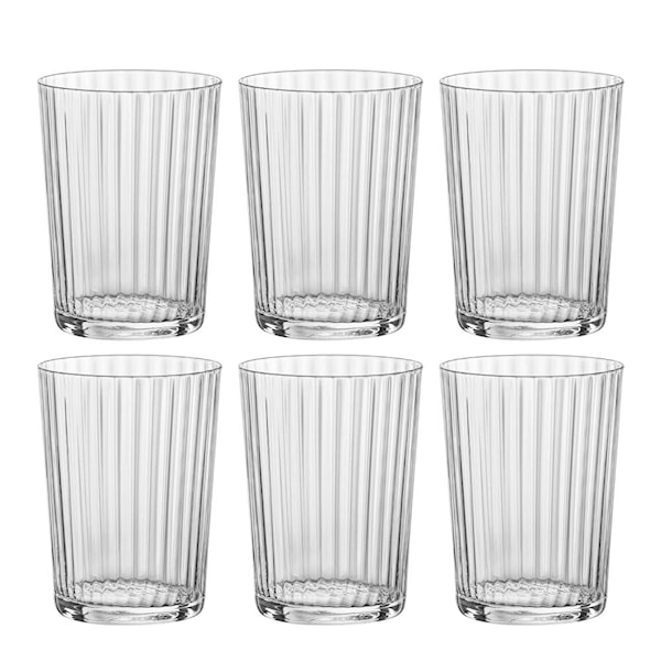 Glasen rymmer 50 cl och lämpar sig för vatten, juice och andra kalla drycker. Den stabila konstruktionen gör dem bekväma att använda, och de kan staplas för effektiv förvaring. Tål maskindisk. Utvecklade i samarbete med Bormioli Luigi.