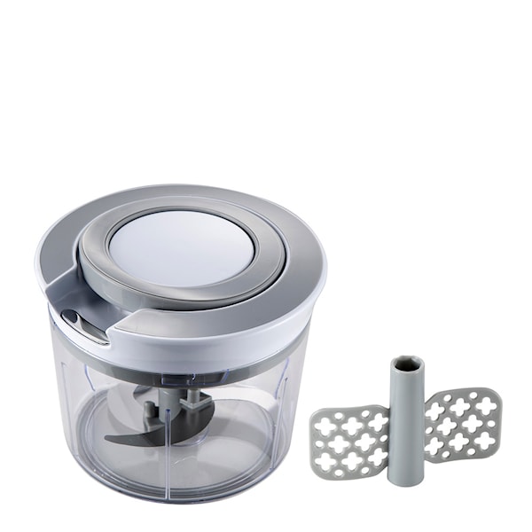Med Basis Minihackare från Modern House kan du snabbt och effektivt hacka grönsaker genom att enkelt dra i den inbyggda ringen på locket. Den är perfekt för att skapa sallader, salsa och guacamole. Dessutom kan du använda den medföljande vispspaden för att blanda dressing.