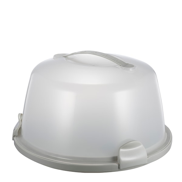 bAYk tårtbox 35 cm i grått från Modern House är det perfekta valet för att hålla dina tårtor och bakverk färska och skyddade. Tillverkad i slitstarkt PP-material har den ett praktiskt handtag som gör den enkel att bära, och säkra klämmor som håller locket ordentligt på plats. Perfekt för både hemmabruk och för att transportera bakverk till vänner, ser tårtkupan till att innehållet håller sig fräscht och transporteras utan spill. För enkel rengöring kan den placeras i diskmaskinen.