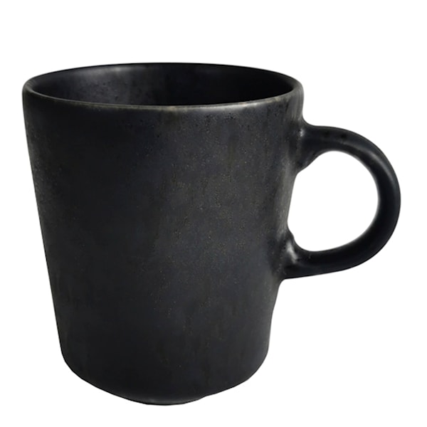 En mugg med ett rustikt uttryck och svart, matt yta ur serien Black Satin från Moden House. Den rymmer 34 cl och passar utmärkt för kaffe, te och varm choklad. Muggen har en tidlös och unik design och med sina rundade kanter är den fantastiskt trevlig att avnjuta varma drycker ur.