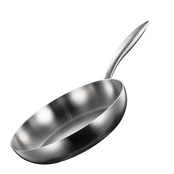 3-PLY-strukturen med tre sammanfogade metallager ger både styrka och jämn värmefördelning. Ytterlagret i rostfritt stål ger hållbarhet, aluminiumkärnan sprider värmen effektivt och den magnetiska stålkärnan gör pannan kompatibel med alla spishällar. De 3 mm tjocka väggarna ger stabil temperatur under hela tillagningen.