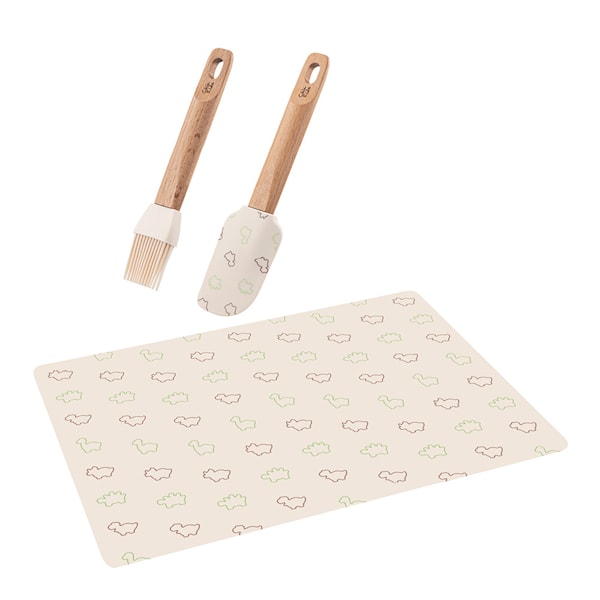 Chic Kids redskapsset 3 delar från Modern House innehåller allt barnet behöver för att vara med i köket. Pensel, slickepott och silikonmatta i mjuka naturtoner – allt format för små händer.