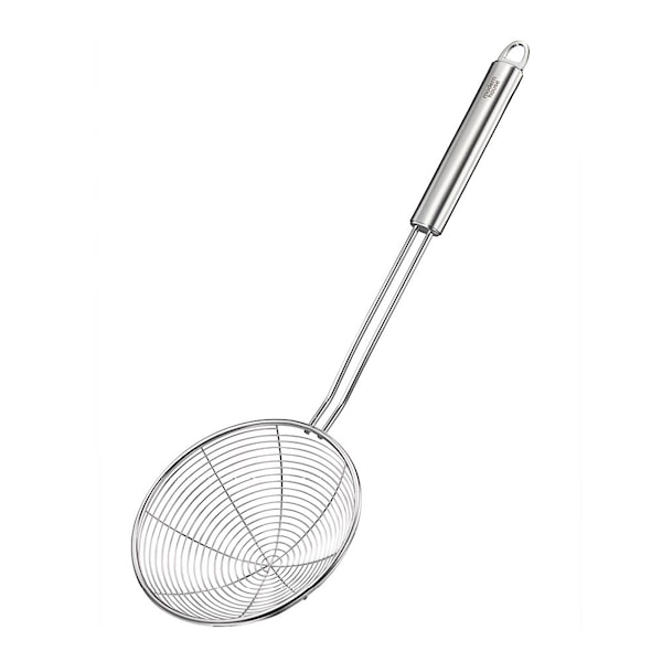 Tillverkad i rostfritt stål 18/8 för hög hållbarhet vid användning i höga temperaturer. Den långa utformningen ger ökad säkerhet och kontroll vid fritering. Lämplig för pommes frites, grönsaker och friterad fisk eller skaldjur. Tål maskindisk.