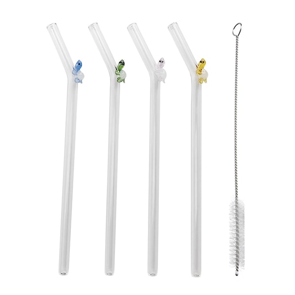 Dessa Fun-sugrör från Modern House är dekorerade med små sköldpaddor och tillverkade av slitstarkt borosilikatglas. Materialet tål både varma och kalla drycker, vilket gör sugrören mångsidiga – perfekta till allt från juice till te.