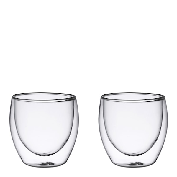 Lundi-muggarna från Modern House är tillverkade av slitstarkt, dubbelsidigt borosilikatglas som klarar både kalla och varma drycker upp till 120°C. De dubbla väggarna isolerar drycken så att du kan njuta av en varm kopp kaffe eller te utan att bränna dig, samtidigt som muggen förblir fri från kondens vid kalla drycker.
