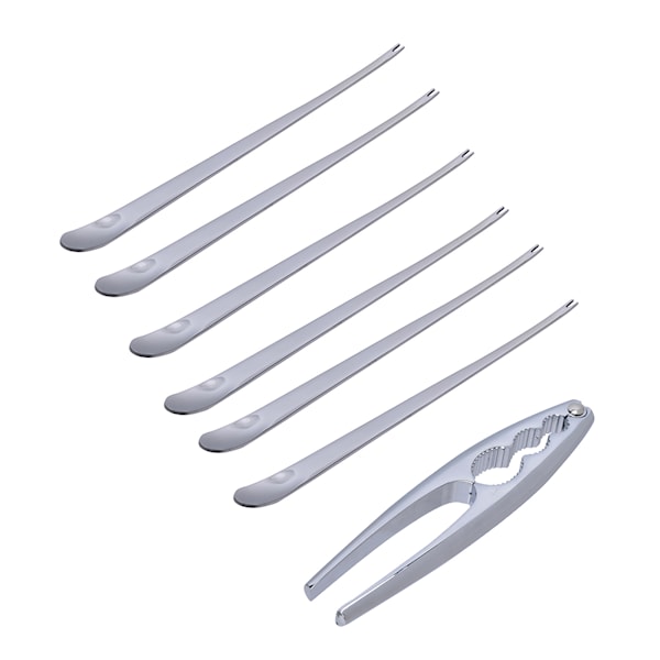 När det vankas skaldjur hemmavid är dessa skaldjursbestick ur serien Odin från Modern House perfekta att ta fram! Uppsättningen i 7 delar är tillverkade i 18/0-stål som blänker fint och består av sex smala skaldjursgafflar samt en tång till de kraftiga skaldjursklorna. Besticken tål maskindisk och bör torkas torra innan dem förvaras. Levereras i en fin förpackning och blir en fin gåva till dig själv eller till skaldjursfantasten.