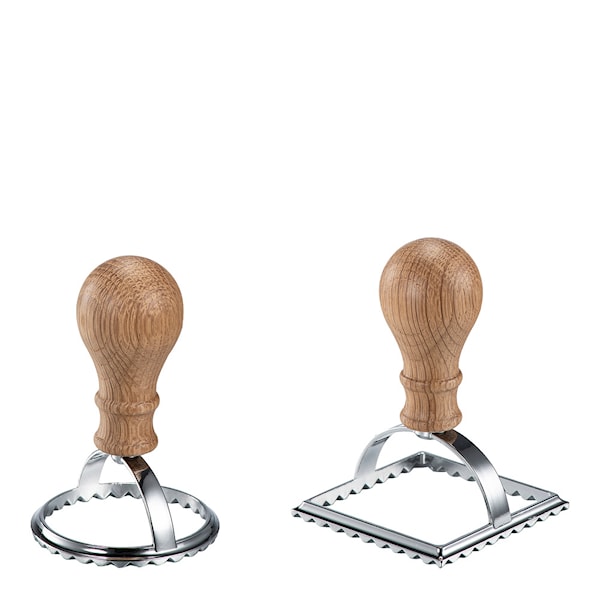 Modern House's Pasta La Vista raviolistämpelset är en praktisk tvådelad uppsättning i natur/blank finish. Med detta set blir det enkelt att skapa både runda och fyrkantiga ravioli-agnolotti, samt att det är användbart för bakning eller andra små rätter som dumplings.