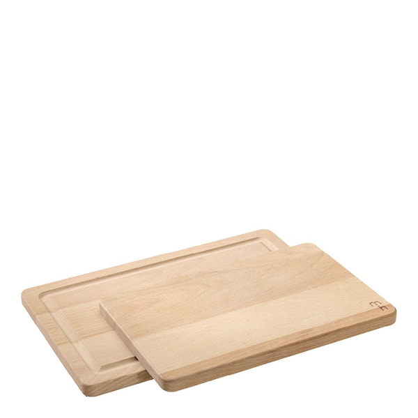 Skärbrädesetet från Modern House i två delar är tillverkat av solid bok och framtaget för att klara daglig användning. Den stora brädan är utrustad med en urfräst blodränna som underlättar vid hantering av kött och gör arbetet renare och mer praktiskt. Den mindre brädan är perfekt för enklare uppgifter som att skära frukt, grönsaker eller frallor, men fungerar även fint som serveringsbräda.