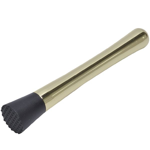 Tillverkad i slitstarkt 18/10 rostfritt stål med en elegant kopparfärgad finish som ger ett exklusivt intryck i baren. Morteln är 20,5 cm lång och 3,5 cm i diameter – kompakt men kraftfull. Den tål diskmaskin, men för att bevara finishen rekommenderas att du torkar av den med en fuktig trasa och sedan med en mjuk, torr duk. Undvik direkt solljus som kan ge färgskiftningar i ytan.