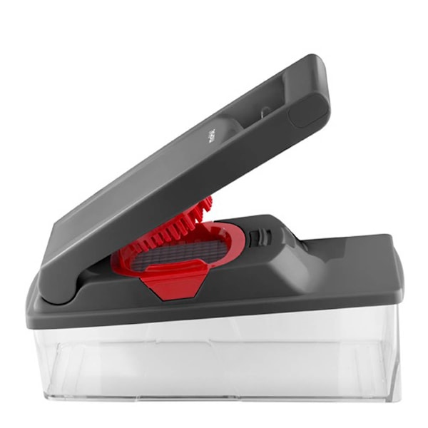 Hackaren sätts direkt på en 1,5 liters behållare med lock. Allt du hackar samlas rent och snyggt, och hela enheten får plats i kylskåpet. Efter användning kan delarna enkelt tas isär och diskas i maskin.