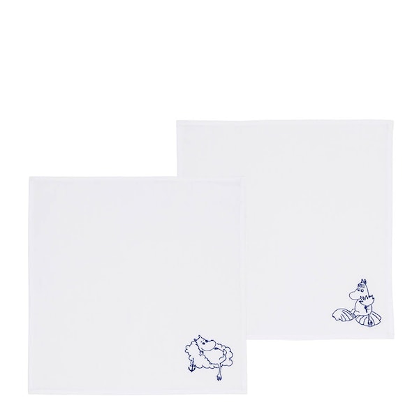 Vackra tygservetter som ger det dukade bordet en touch av Muminmagi