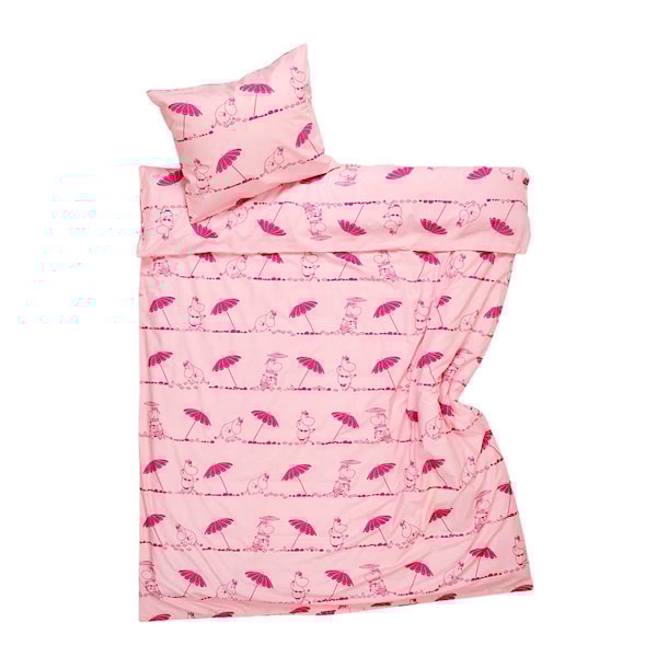 MoominArabia Mumin bäddset 150x210 cm Underbar bjuder in till rosa drömmar och strandliv med Snorkfröken. Mönstret är hämtat från Tove Janssons bok Mumin på Rivieran och förmedlar lekfullhet och nostalgi i varje detalj.