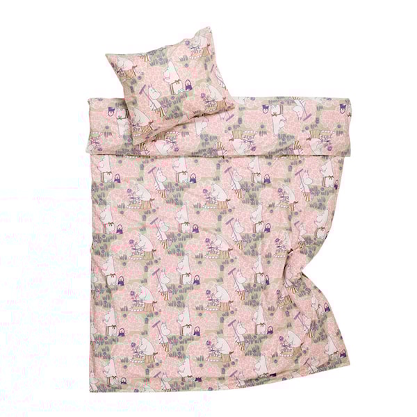 MoominArabia Mumin bäddset 150x210 cm Rosenträdgård speglar Muminmammans rofyllda tillflyktsplats – där rosorna blommar oavsett omgivning. Mönstret är illustrerat i dämpade, jordnära färger som skapar ett lugnt uttryck i sovrummet.