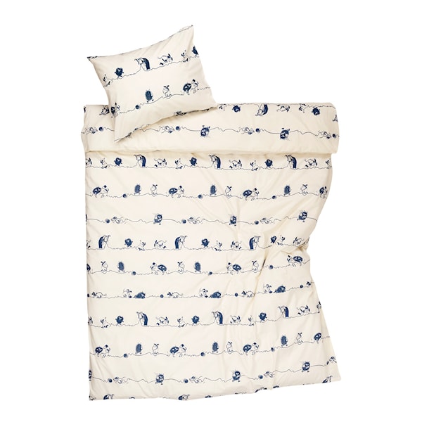 Mumin bäddset 150x210 cm med Stinky från MoominArabia är ett lekfullt och charmigt tillskott till ditt sovrum. Sover aldrig Stinky? Mästaren av bus och rackartyg tar vara på varje minut och skryter om sina bravader. Den här gången har Mumindalens mest ihärdiga buse siktat in sig på Filifjonkan och en liten hund. Tillverkat av 100 % ekologisk bomull, kombinerar detta bäddset komfort och hållbarhet med en rolig berättelse från Tove Janssons älskade Muminvärld. Perfekt för alla Mumin-fans som vill ha en touch av äventyr och bus i sina drömmar.
