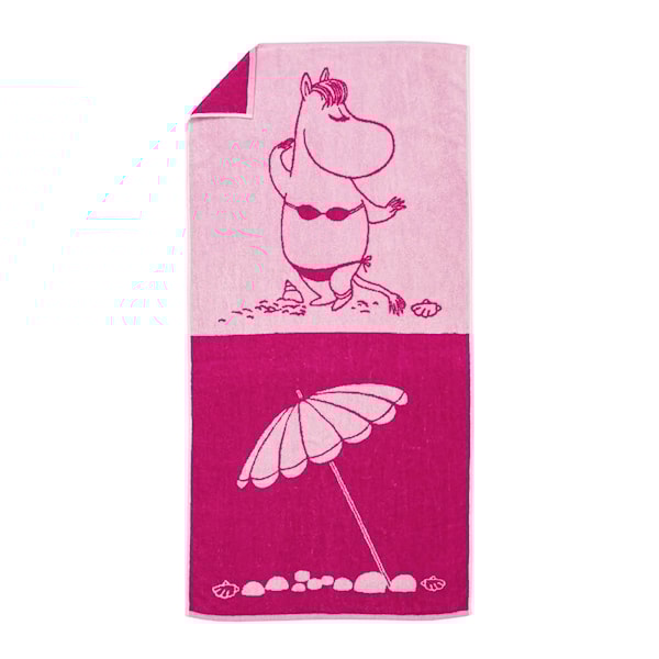 MoominArabia badhandduk 70x140 cm, Snorkfröken rosa är ett måste för alla som älskar mjuka material och söta motiv. Den ekologiska bomullen känns behaglig mot huden, medan Snorkfrökens illustration sprider glädje.