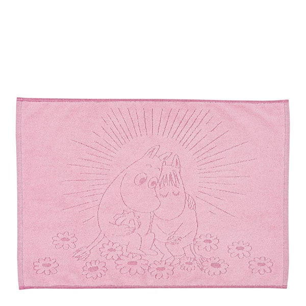 MoominArabia badrumsmatta 50x70 cm, Förälskade rosa är en perfekt blandning av mjukhet, funktion och design. Med illustration av Mumin och Snorkfröken som påminner om att vi är starkare tillsammans.
