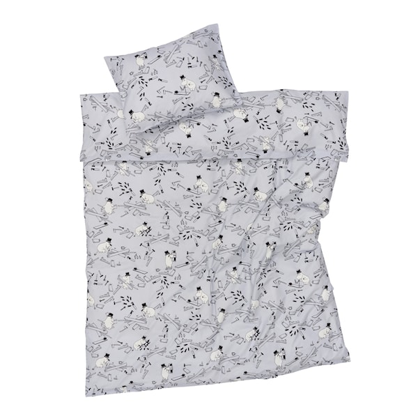 Mumin Bäddset 150x210 cm Muminpappa Grå från Moomin by Arabia som gjort för ditt Mooment of coziness. Arabias serie mjuka och gosiga sängkläder i ekologisk bomull, alla med motiv från Muminvärlden är inte komplett utan att Muminpappan också får ett.