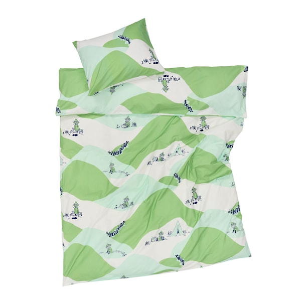 Mumin Bäddset 150x210 cm Snusmumriken Grön från Moomin by Arabia, gosiga sängkläder i ekologisk bomull, för ditt Mooment of coziness.