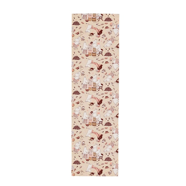 MoominArabia Mumin bordsduk 40x140 cm Husarbete är en vacker och praktisk textil med ett motiv som fångar vardagsglädjen i Mumindalen. Den livliga illustrationen från Husarbete-serien ger bordsdukningen ett humoristiskt och hemtrevligt uttryck.