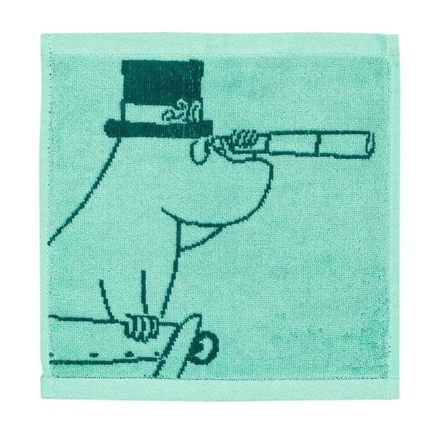 MoominArabia handduk 25x25 cm, Muminpappan blågrön är en dekorativ och praktisk liten textil i ekologisk bomull. Med Muminpappan som motiv inspirerar den till vardagsäventyr och glädje.
