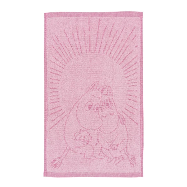 MoominArabia handduk 30x50 cm, Förelskade rosa är en liten, kärleksfull textil med stort uttryck. Med Mumin och Snorkfröken i ett varmt motiv är det både ett dekorativt och praktiskt val.