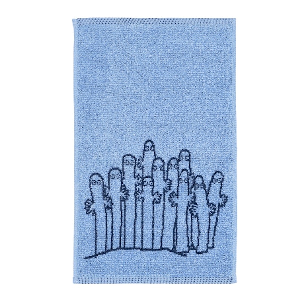 Mumin handduk 30x50 cm med Hattifnattarna, från MoominArabia, är en mjuk och mysig handduk som för med sig en touch av Mumindalens mystik. Hattifnattarna, dessa mystiska vandrare, rör sig i stora skockar och fascineras av åska eftersom de laddas med elektricitet under åskväder. De växer från små frön, men bara när de sås på midsommarafton. Njut av den här underbara handduken som kombinerar praktisk funktion med en förtrollande design, perfekt för alla Mumin-fans som vill ha en bit av Tove Janssons magiska värld i sin vardag.