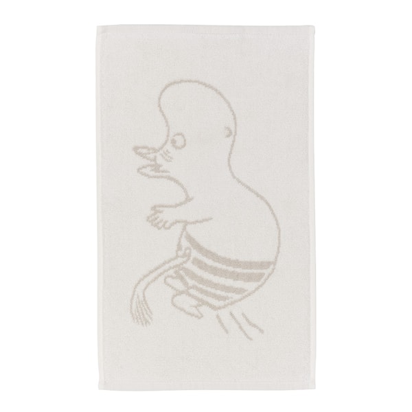 Mumin handduk 30x50 cm med Mumintrollet i vitt, från MoominArabia, är en mjuk och mysig handduk som för med sig en bit av Mumindalens magi till ditt hem. Muminfamiljen har flyttat till en öde ö, och Mumintrollet och Snorkfröken är i full gång med att bygga sjömärken av drivved på de små kobbarna runt ön. De lägger även nät för att fånga fisk, men får mest upp sjögräs. Denna handduk kombinerar praktisk användning med en charmig berättelse från Tove Janssons älskade Muminvärld, perfekt för alla Mumin-fans som vill ha en touch av äventyr i sin vardag.