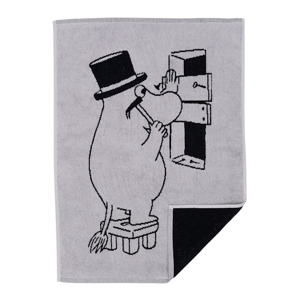 Mumin handduk 50x70 cm med Muminpappan i grått, från MoominArabia, är en perfekt blandning av funktion och Muminmagi. Denna mjuka och mysiga handduk fångar Muminpappan i sitt esse, alltid sysselsatt med att fixa något i huset eller i Mumindalen. Hantverk är hans superkraft, och oavsett om det handlar om att laga en bro efter ett oväder eller att förbereda inför vintern, är Muminpappan alltid redo med sina pålitliga verktyg. Denna handduk är inte bara praktisk utan också en charmig hyllning till Tove Janssons älskade karaktär, och kommer att ge en härlig touch av Mumindalen till ditt hem.