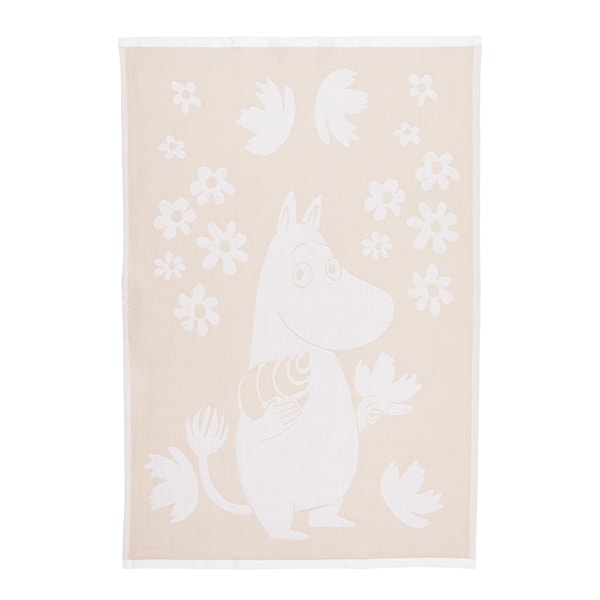 Mumin kökshandduk 45x65 cm med Mumintrollet från MoominArabia är det perfekta tillskottet till ditt kök. Våren har kommit till Mumindalen och Mumintrollet njuter av naturen som blommar omkring honom. De vackra blomsterdetaljerna i mjuka beige nyanser passar perfekt i alla kök och mönstret visar Mumintrollets starka band till sin omgivning. Tillverkad av högkvalitativa material, kombinerar denna kökshandduk både funktionalitet och estetisk charm, och sprider en känsla av Mumindalens magi i ditt hem.