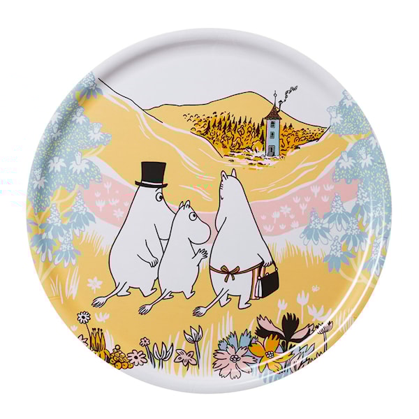 Mumin Arabia serveringsbricka 35 cm från Familjemys-kollektionen är en hyllning till de små ögonblicken som skapar gemenskap och glädje. Med sitt charmiga motiv av Muminfamiljen som njuter av tiden tillsammans, fångar brickan värdet av samvaro och närvaro – även under lugna stunder.