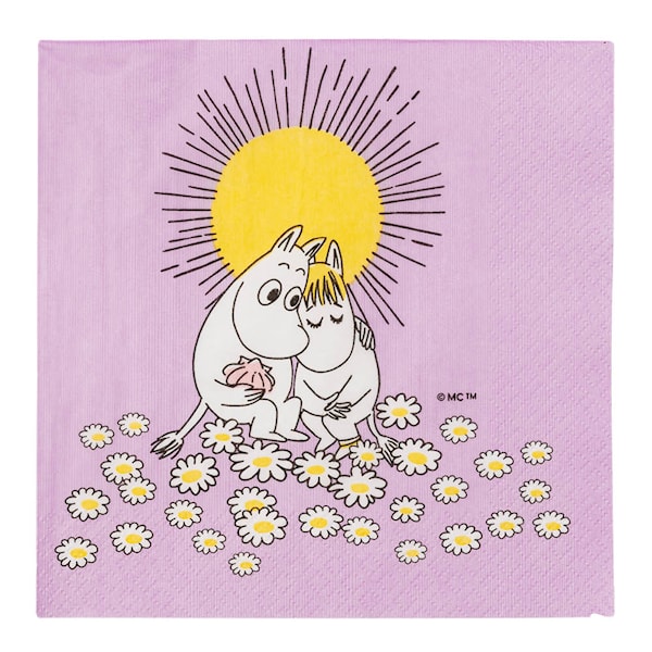 MoominArabia Mumin servetter 33x33 cm Förälskade lila, 20-pack gör varje måltid lite mjukare och mer personlig. Med Mumin och Snorkfröken i ett lekfullt motiv från Förälskade-serien blir de en fin följeslagare till både vardag och kalas.
