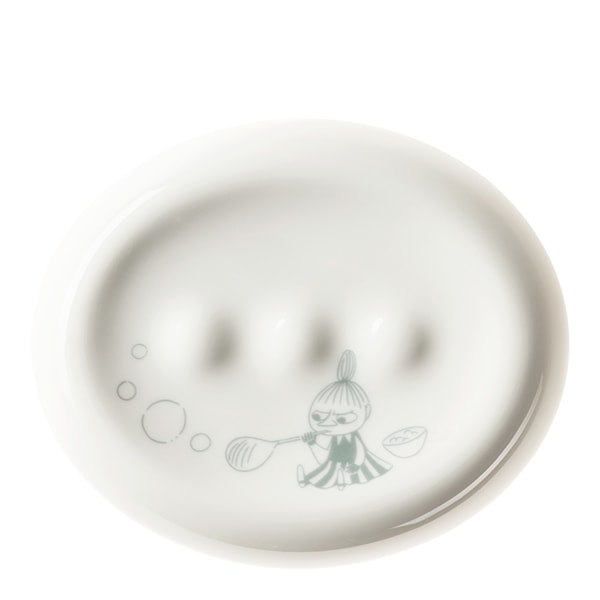 Mumin tvålkopp Badstund från MoominArabia fångar en lugn stund mitt i Muminfamiljens kaos, där Lilla My njuter av egentid med bubblor. Dessa nya lekfulla badrumsartiklar i keramik utgör ett härligt tillskott till hemkollektionen från MoominArabia.