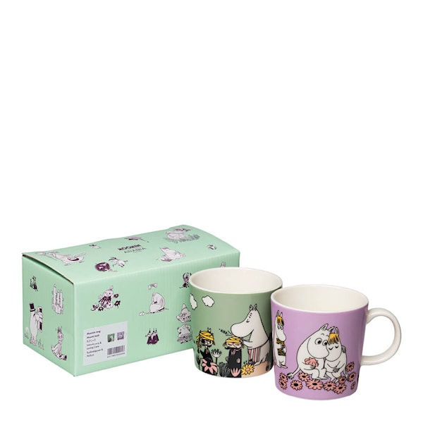 MoominArabia Muminmugg 30 cl 2-pack Förälskade & Omtanke kombinerar två av Mumins mest älskade teman i en elegant presentask. En mugg för kärlek, en för omsorg – båda perfekta för dagliga fikastunder eller som en värdefull samlargåva.