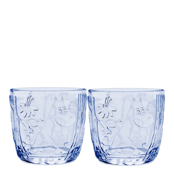 Ge vardagen en poetisk touch med detta 2-pack glas från Moomin Arabia, 28 cl i färgen Aqua.