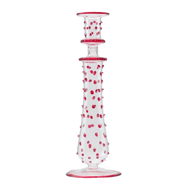 The Dots ljusstake 26 cm från Moonlight Copenhagen är en charmig och unik inredningsdetalj som förgyller alla miljöer med sin lekfulla elegans. Denna ljusstake är tillverkad av munblåst glas i en vacker rosa nyans och bjuder på en subtil lek med form och färg. Varje exemplar är noggrant handgjort med speciella tekniker som ger upphov till små variationer, vilket gör varje ljusstake helt unik och bär på sin egen karaktär.