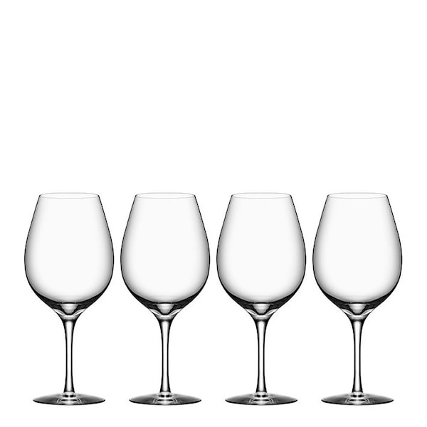 Njut ordentligt och känn dryckens alla smaker ur detta vackra glas från Orrefors. Elegant design möter funktion i serien More designad av Erika Lagerbielke. Duka med dessa vackra glas även till vardags då de tål att diskas i maskin. Säljs i 4-pack.