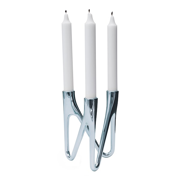 En ljusstake med tre armar som har en vacker pulverlackerad beläggning. Kombineras fint med andra färger eller storlekar i serien för att skapa en iögonfallande, personlig dekoration med stearinljus. Ljusstaken gör sig utmärkt till vardags som till fest. Designad av Jakob Wagner.